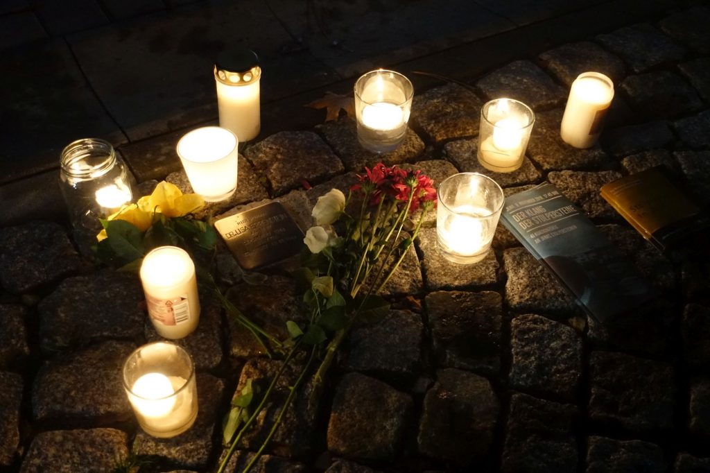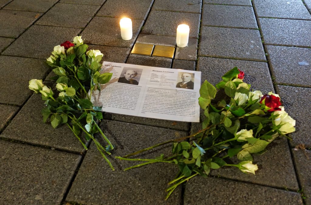 Nach dem Auftritt an der Villa Rosenthal 2018 und in der Schaefferstraße am Stolperstein für Dr. Lisa Eppenstein spielte Cantoj in diesem Jahr am Stolperstein für Klara und Herrmann Friedmann in der Grietgasse 25/26.