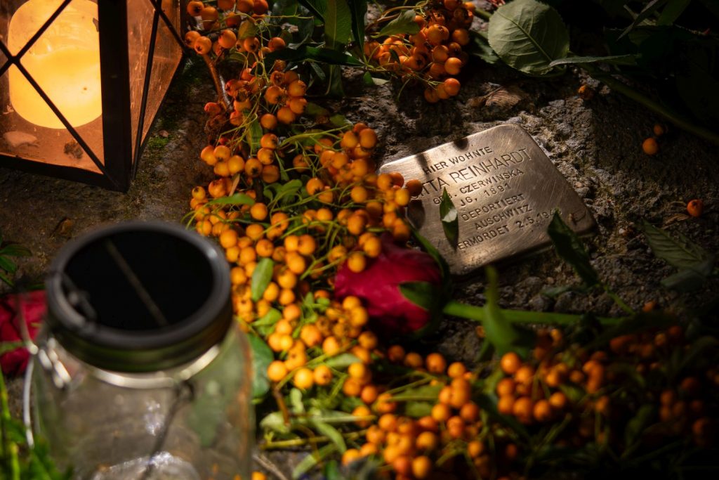 Nach dem Auftritt an der Villa Rosenthal 2018, in der Schaefferstraße am Stolperstein für Dr. Lisa Eppenstein 2019 und am Stolperstein für Klara und Herrmann Friedmann in der Grietgasse 25/26 2020, spielt Cantoj in diesem Jahr am Stolperstein für Gitta Reinhardt in der Brauhofstraße 5.